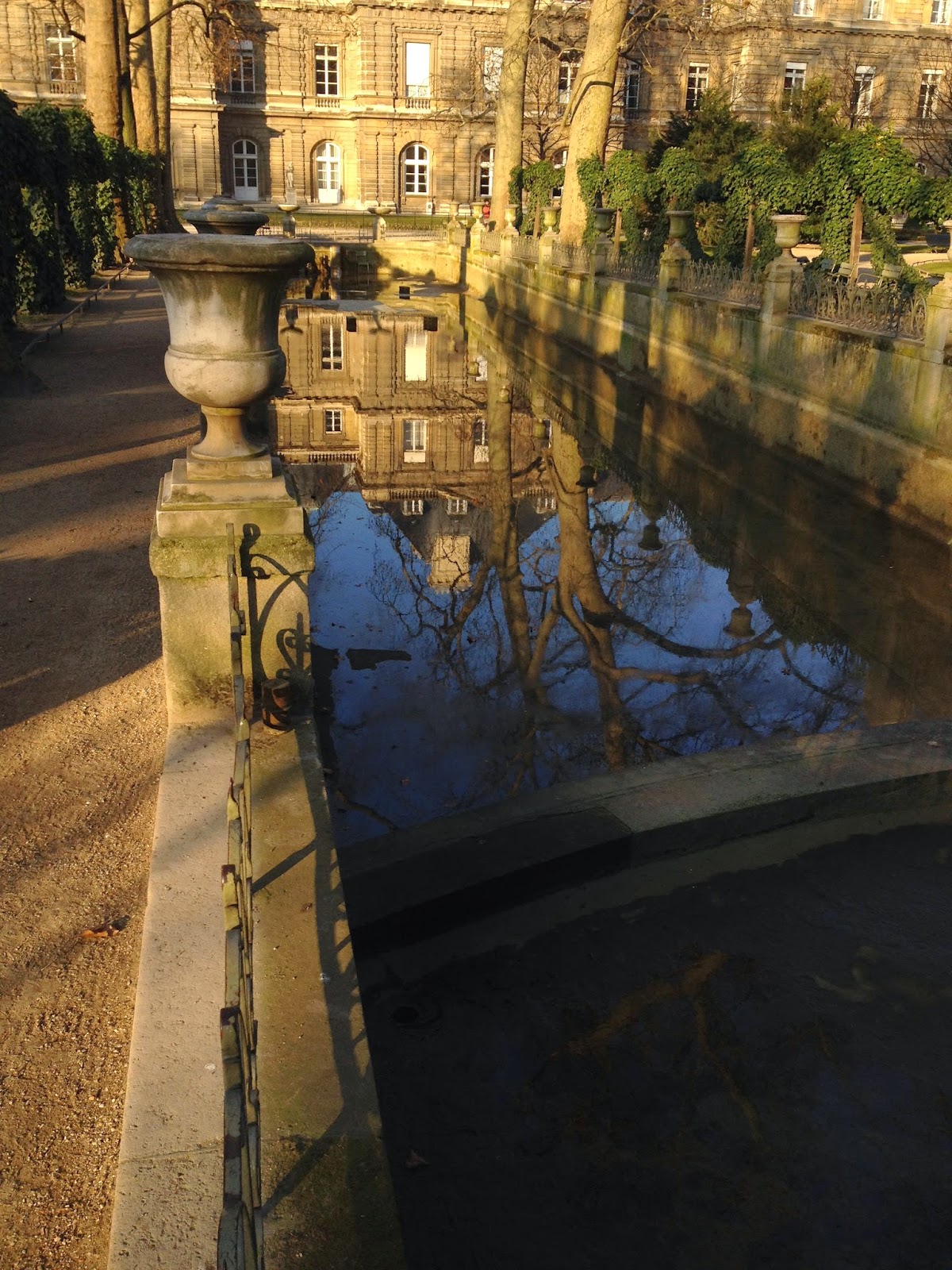 I remember reading Adam Gopnik's Paris to the Moon and feeling especially drawn to the cover of the copy I had. It featured a large beautiful building in front of a formal French parterre. The building I would later learn is actually the French Senate (former palace) inside the Luxembourg Garden. The garden was a supreme pleasure to visit and it was great to discover the various statuary, the rows of hedged trees, and the orderly gravel paths. Despite the bleak winter setting the garden was still very elegant and emotive.